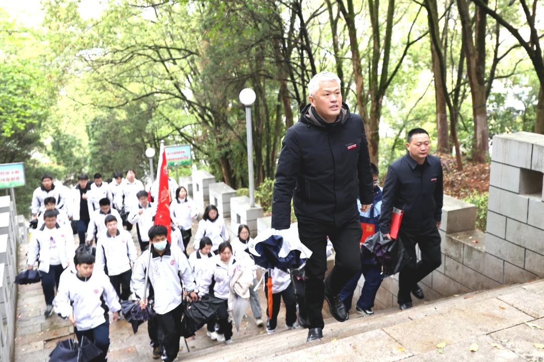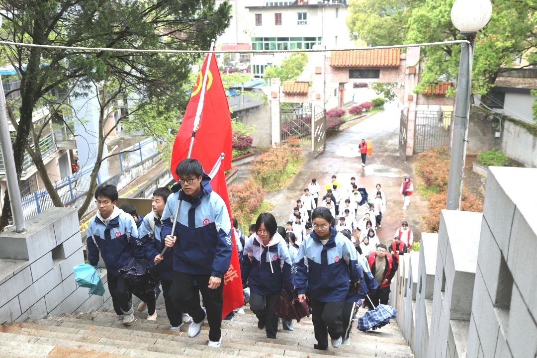 在校党委书记许俊斌和校长余国辉的带领下,师生们徒步前往邵武市烈士陵园。