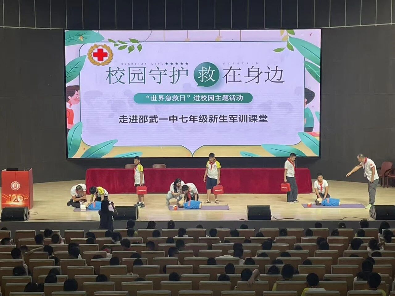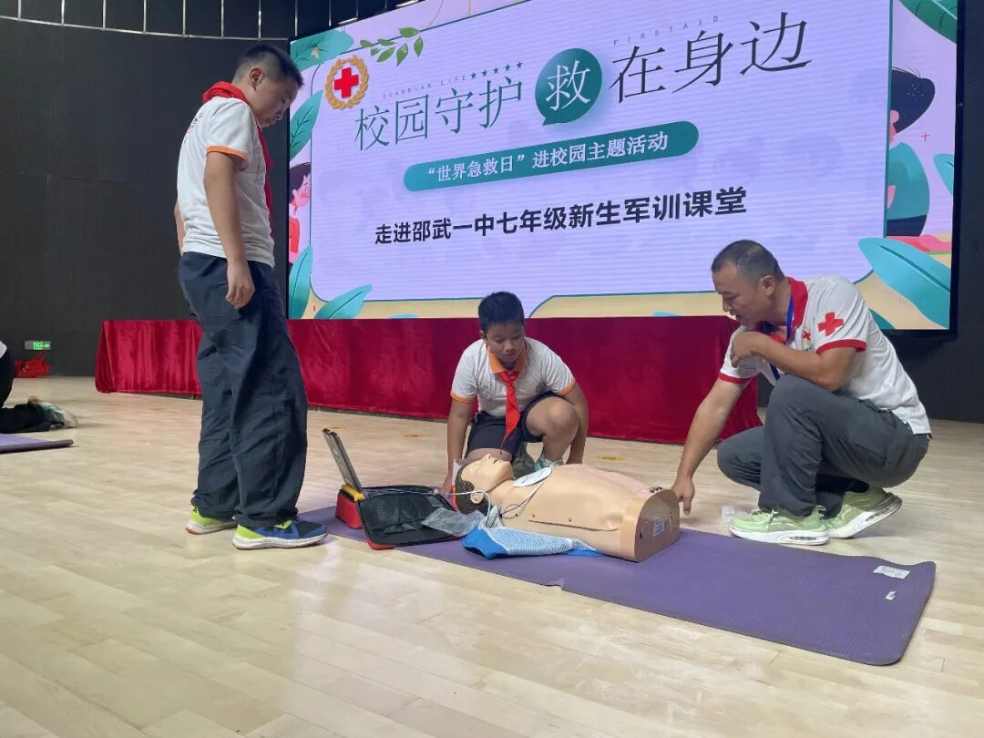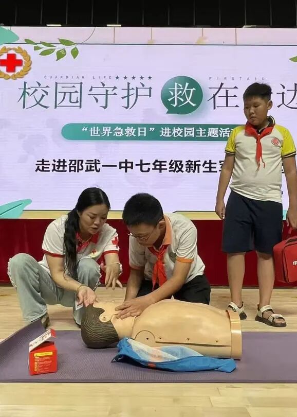 邵武市红十字会的急救培训讲座,重点讲解心肺复苏操作要领,帮助新生初步掌握基础急救能力。