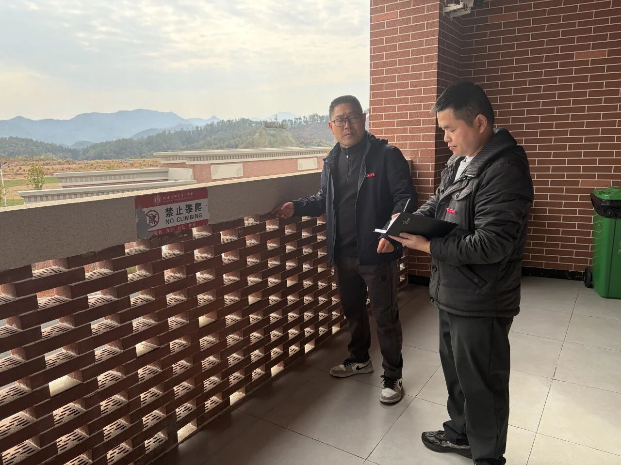 2月3日,执行校长黄辉、执行副校长唐建友及初中部安保办负责人吴华诚对初中部教学楼及周边进行消防、安全、卫生环境等巡查,排查校园安全隐患,提出整改措施,守护校园寒假安全。