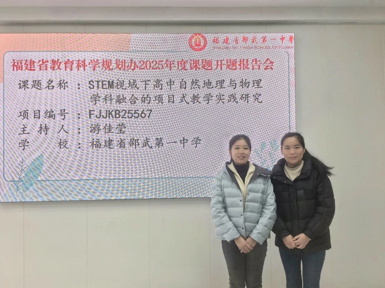 近日,南平市 2025 年福建省教育科学规划办立项课题示范开题活动在建阳区教师进修学校举行,我校地理教研组组长游佳莹老师主持的省级课题《STEM 视域下高中自然地理与物理学科融合的项目式教学实践研究》(课题编号:FJJKB25567)成功入选市级示范开题课题。课题主持人游佳莹老师、核心成员詹小春老师在活动中作现场开题汇报,团队凭借扎实的研究设计、清晰的实践路径,赢得与会专家与同仁的高度认可,充分彰显了我校强劲的教科研实力与跨学科教研的协作成效。