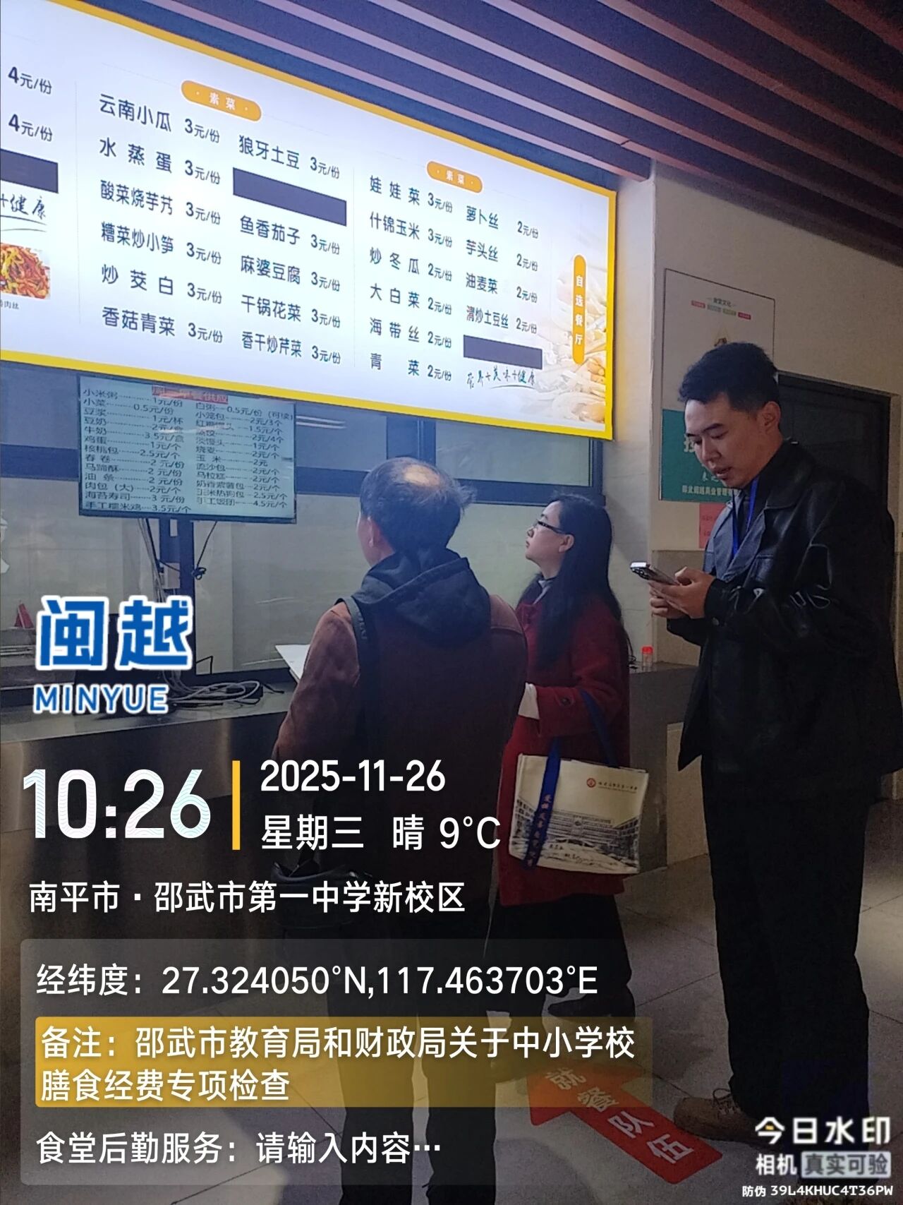 为严格落实《邵武市教育局 邵武市财政局关于转发南平市教育局南平市财政局关于印发南平市中小学学校食堂财务管理工作指引(试行)的通知的通知》(邵教计〔2025〕40号)文件要求,邵武一中高度重视膳食经费规范管理工作,于2025年11月19日至24日期间,对照膳食经费自查表逐项开展认真自查,全面梳理食堂财务管理、食品安全责任落实等情况。11月26日上午,邵武市教育局副局长邱伟明、财政局副局长沈文星带队,联合教育局计财股、安全股、装备站及财政局核算中心相关工作人员组成专项检查组,莅临邵武一中开展膳食经费专项检查。检查组重点围绕膳食委员会建立及履职、合同条款明确性、饭菜价格公示、伙食费收支管理、财务岗位设置及信息公开等核心内容,通过查阅资料、实地查看、沟通问询等方式进行细致核查。 此次专项检查既是对一中膳食经费管理工作的全面检验,也为规范食堂运营、保障师生合法权益提供了有力指导。邵武一中将以此次检查为契机,针对发现的问题立行立改,持续健全膳食经费管理长效机制,切实规范食堂运营管理。