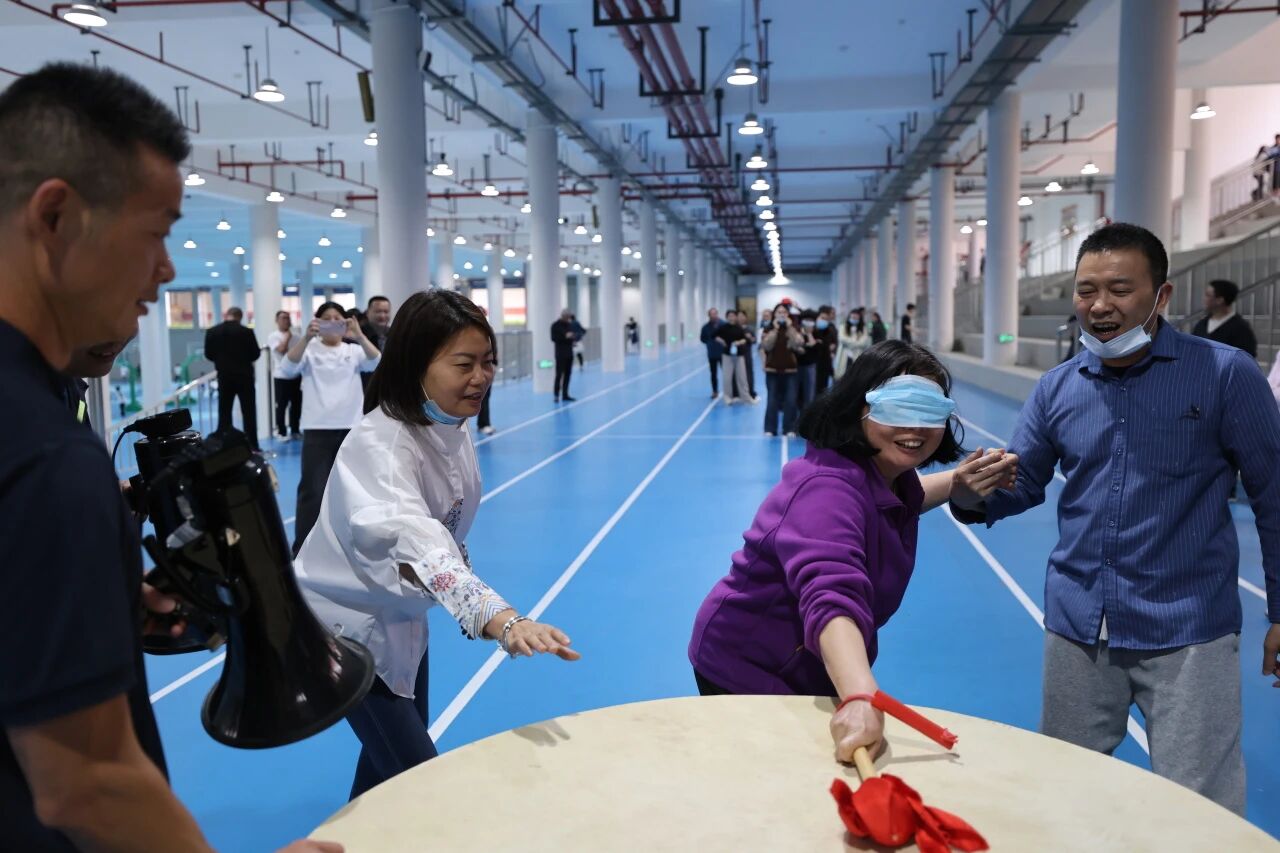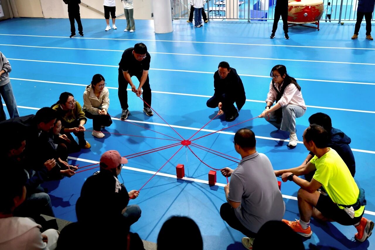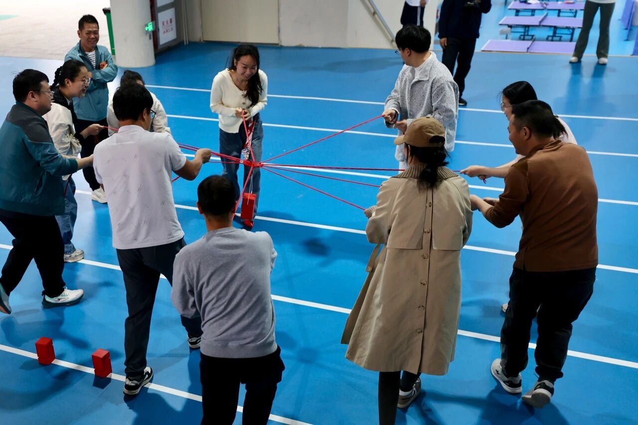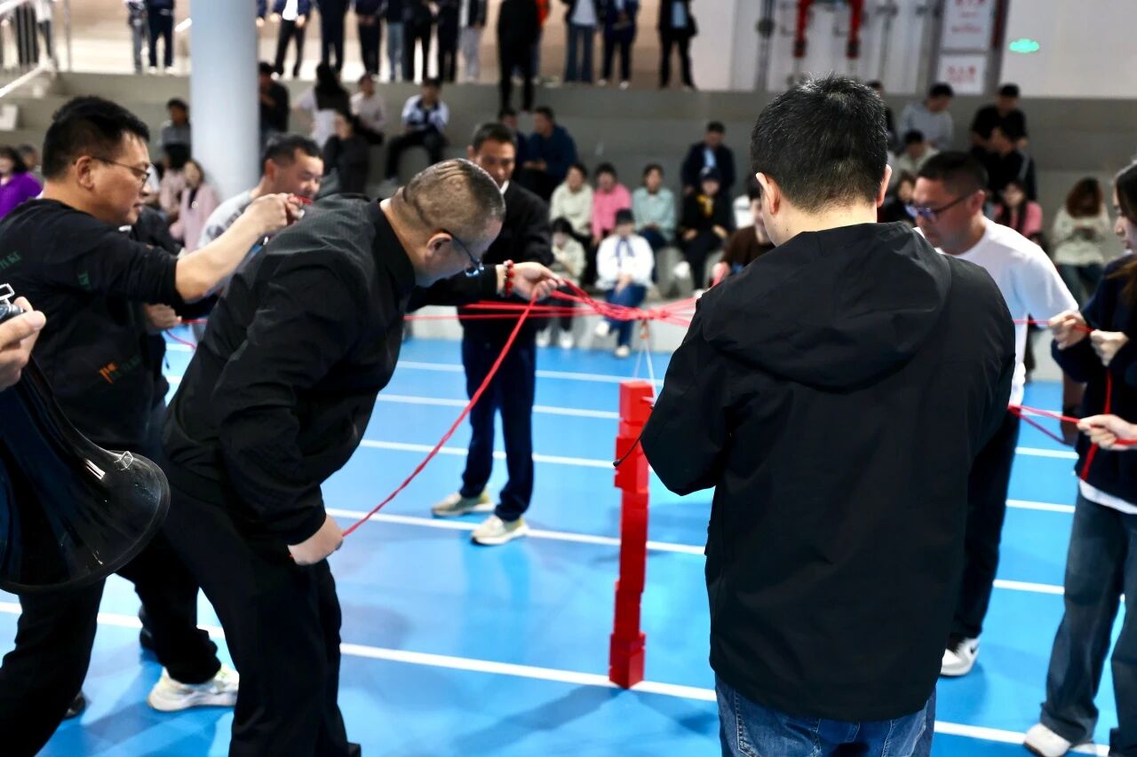 蒙眼打鼓环节,参赛队员听从指令、沉着出发,在队友的鼓励与引导下精准击鼓,接力传递中尽显默契;合力筑塔项目里,大家同心牵拉绳索、精准控制积木,齐心协力搭建起稳固的“高塔”,充分展现了团结协作、奋勇争先的团队精神。赛场内外欢声笑语不断,加油声、喝彩声此起彼伏,洋溢着轻松和谐的节日氛围。