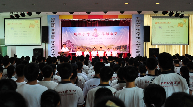 在第33个教师节来临之际,7日上午10时,以“明礼崇德 尊师尚学”为主题的“朱子故里·理学摇篮”2017’朱子敬师礼活动在我校学生报告厅举行。邵武市人民政府副市长兰美香、我校郭胜光校长先后致辞。邵武市教育局局长陈生良、共青团邵武市委书记林敏、邵武市委文明办副主任黄新华、邵武市人民政府教育督导室副主任夏爱英等领导,邵武市文广新局及兄弟学校的嘉宾出席活动。高一753名新生参加活动,行“朱子敬师礼”,传承弘扬朱子文化,展示明礼崇德、尊师尚学的时代风貌。