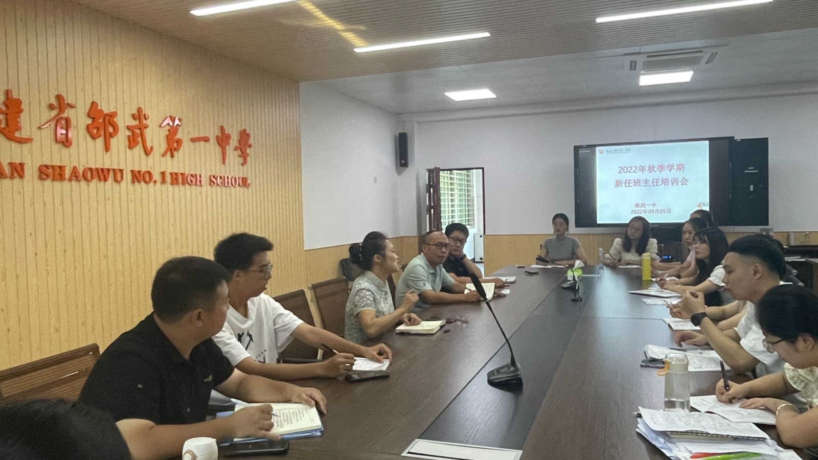 为提升我校新任班主任队伍的管理水平,建设高质量班主任队伍,9月5日上午,邵武一中在校行政会议室召开了2022年秋季学期新任班主任培训会。邵武一中党委副书记杨方、政教处副主任黄芳、全校新任班主任老师一起参加培训会,培训会由政教处主任赵纯锋主持。