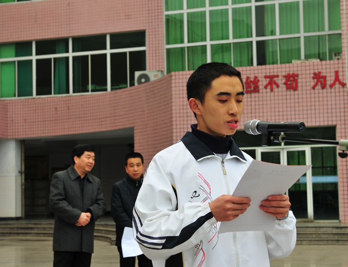 仪式上,郭胜光校长首先简要回顾了学校在打造“瑞榴书香校园”,举办27届艺术节歌咏比赛等方面工作中取得的成绩,接着他代表学校提出了2015年学校高考的主要目标:高考本一上线突破310大关,上“211”、“985”名校人数突破90大关,力争有学生考取北大或清华。最后,他寄语高三的同学们百日冲刺,百分之百;分秒必争,分分必得,寄语高一高二的同学们勤奋踏实,严于律已,自强不息。通过此次开学典礼活动,老师们纷纷表示有了新的动力和更高的工作热情,教学教研的干劲更加足了;同学们也认识到了自己所肩负的责任,树立了明确的理想目标。