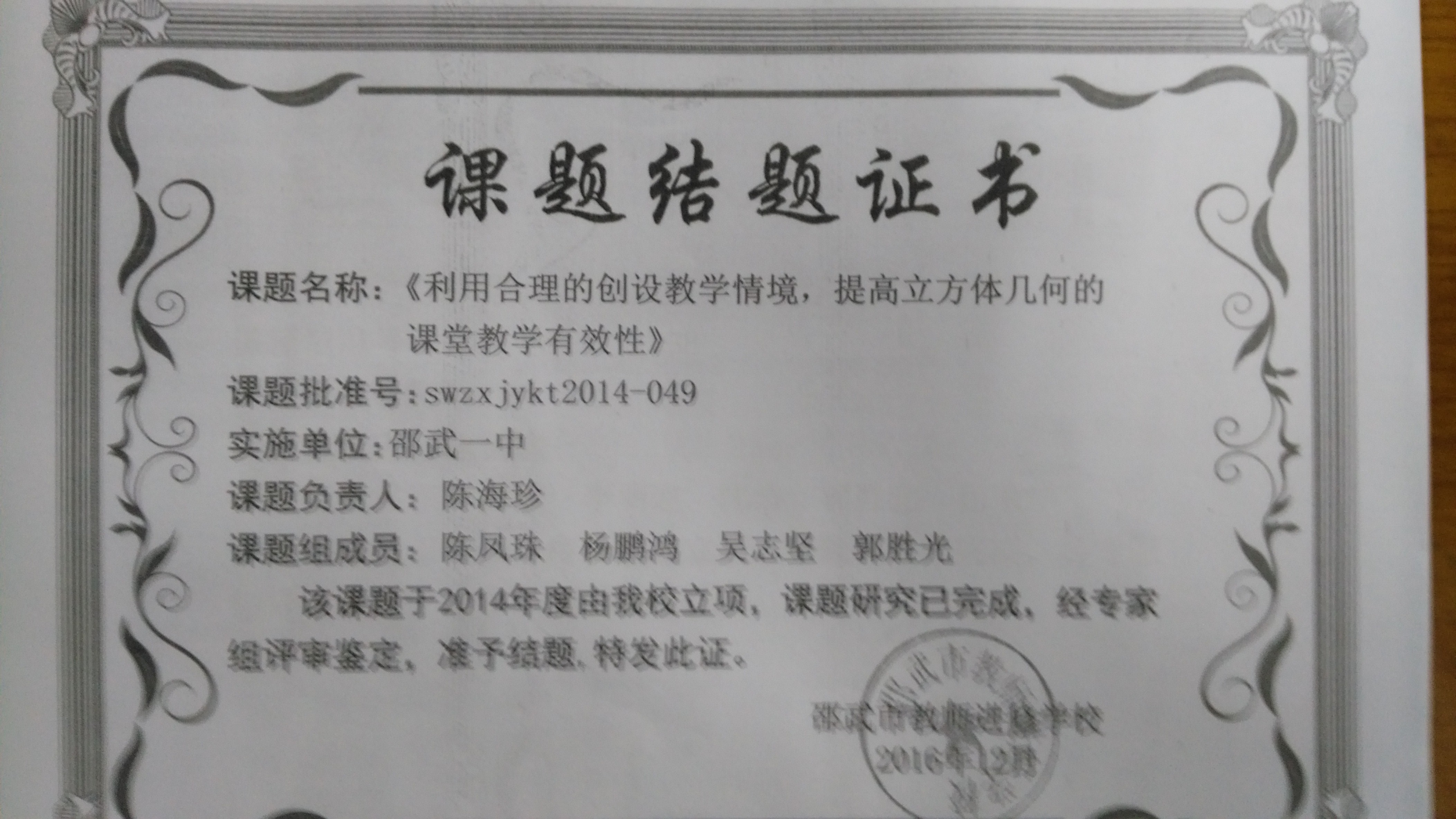 管理制度 教研动态 教师成长 教师论文 课题研究 高考研究 开放办学 省优质学科之窗 利用合理的创设教学情境,提高立方体几何的课堂教学有效性 作者:佚名 来源:本站原创 日期:2017-03-04 人气:9129 上一篇:培养和提高高中学生数学阅读理解能力研究 下一篇:高一数学“学困生”的非智力因素及其转化策略的调查研究 通知公告 更多 【瑞榴 • 公告】2026年邵武一中第... 【瑞榴 • 公告】2026年邵武一中自... 【瑞榴 • 公告】2026年福建省邵武... 【瑞榴 • 公告】2026年福建省邵武... 【瑞榴 • 公告】2025年邵武一中第... 【瑞榴 • 公告】2025年福建省邵武... 最新动态 更多 【瑞榴 • 德育】春启新程育桃李 ... 【瑞榴 • 德育】百日淬烽尽,六月... 【瑞榴 • 校园开放日】百年传薪启... 【瑞榴 • 德育】凝心聚力启新程 ... 【瑞榴 • 家校活动】瑞榴沁家校 ... 【瑞榴 • 教研】喜报!邵武一中课... 【瑞榴 • 学生活动】薪火相传,筑... 【瑞榴 • 安全】严排查、除隐患、... 【瑞榴 • 初中活动】瑞榴润教 安... 【瑞榴 • 德育】瑞榴润心 育真同...