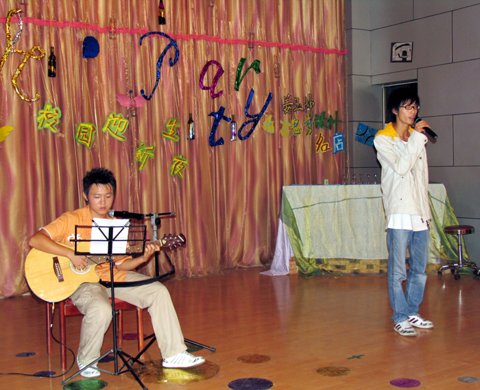 9月30日晚,丹桂飘香,邵武一中学生报告厅座无虚席,由校团委学生会举办的2006年迎新晚会晚会在动感极强的街舞表演中拉开帏幕,晚会节目精彩纷呈,由同学自编自导的舞台幽默剧《唐僧取经》以其巧妙的构思,大胆的想象不断引起同学们掌声和欢笑,校吉他协会成员自弹自唱的几曲劲歌让高一新生们见识了学长们的在高中紧张学习生活之外所练就的令人惊叹的艺术成就。整台晚会充满着欢快、热烈的气氛,节目内容健康、积极向上,展示了一中学子朝气蓬勃的精神风貌。