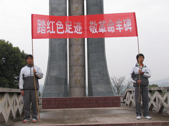 校园新闻 邵武一中团委组织团员开展"踏红色足迹,敬革命丰碑"活动 作者:admin 来源:本站原创 日期:2007-04-04 人气:4217 邵武一中团委组织团员开展"踏红色足迹,敬革命丰碑"活动 3月2日上午,邵武一中团委组织开展“踏红色足迹,敬革命丰碑”活动,全校30多名师生前往祭扫烈士墓,缅怀革命先烈。师生们步行到烈士陵园,在庄严肃穆的革命烈士纪念碑前,同学们心中的敬佩缅怀之情油然而生。敬献花圈,献诗,默哀,瞻仰烈士生平事迹--同学们诚挚而认真地向烈士的英灵表达着心中的敬仰以及学习先烈无私奉献精神,刻苦学习,报效祖国的坚定决心。 上一篇:邵武一中党总支召开“丰富邵武精神,提高自身素质”研讨会 下一篇:邵武一中高中校本课程开课啦! 通知公告 更多 【瑞榴 • 公告】2026年邵武一中第... 【瑞榴 • 公告】2026年邵武一中自... 【瑞榴 • 公告】2026年福建省邵武... 【瑞榴 • 公告】2026年福建省邵武... 【瑞榴 • 公告】2025年邵武一中第... 【瑞榴 • 公告】2025年福建省邵武... 最新动态 更多 【瑞榴 • 安全】居安思危强技能 ... 【瑞榴 • 年段活动】星驰万里,共... 【瑞榴 • 年段活动】瑞榴长青 砥... 【瑞榴 • 家校社】校社携手传美德... 【瑞榴 • 教研】深化课堂教学改革... 【瑞榴 • 安全】家校协同筑牢“舌... 【瑞榴 • 德育】春启新程育桃李 ... 【瑞榴 • 德育】百日淬烽尽,六月... 【瑞榴 • 校园开放日】百年传薪启... 【瑞榴 • 德育】凝心聚力启新程 ...
