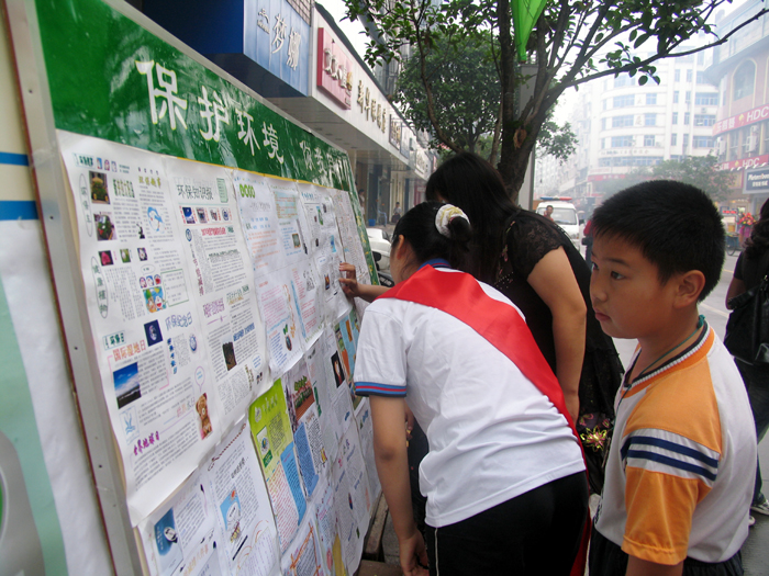 在组织好这次上街环保义务宣传活动外,学校团委还将会同校地理教研组紧紧围绕“六五”世界环境日的主题,充分利用校园网、校园广播、黑板报、宣传栏、环保小报等形式,号召全校师生学习有关环保知识,环保法律法规,并组织开展好以下系列活动:一是利用周一国旗下讲话时间要求全体师生从身边做起、从小事做起,自觉保持环境整洁,参加到绿化、美化校园的活动中去。二是全校学生以“保护环境,爱我家园”为主题,进行一次环保论文比赛,对优秀论文在全校进行展评;三是在团员志愿者中组织“环保小分队”,到社区宣传环境保护的重要性,号召社区居民积极行动起来,参与到环境保护、创建绿色社区,建设人与自然和谐相处的绿色家园活动中去。