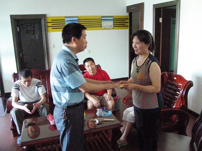 随后张光华书记代表学校为剑宇同学送上1000元慰问金并转达了范纯善校长对他的关心和问候。