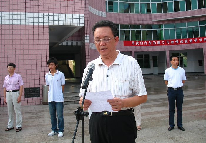 金秋时节,全校师生笑意融融,神情宜爽,喜迎新学年的到来。9月1日全校师生3000多人在操场上隆重举行新学年开学典礼。开学典礼由张光华书记主持。范校长发表了热情洋溢的讲话,他衷心地希望老师们在自己的岗位上弘扬奥运健儿勇于奉献、甘于寂寞、乐于付出的精神,全身心的投入工作,使学校各项工作再上新台阶。也衷心地希望同学们,把握好青春大好时光,脚踏实地,刻苦学习,健康成长,以更快、更高、更强的成绩来报答母校,为母校增光添彩!全体师生深受鼓舞。