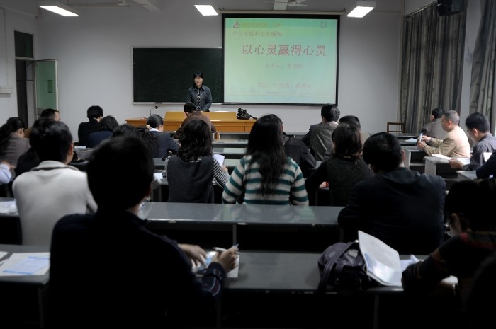 近日,邵武一中党委、政教处组织全校42名班主任党员集体“充电”,在校多媒体教室收看《以心灵赢得心灵》为主题的科学发展观专题电化教育片,为学校科学发展奠定基础。讲座上,校党委组织委员副校长杨方以生动的事例和形象的语言,从科学发展观的基本内涵、学习科学发展观的意义、如何结合自身实际贯彻科学发展观三个方面进行了深刻的阐述。整个讲座理论联系实际,深入浅出,让在座的党员教师对科学发展观有了新的思考和体会,深切感受到认真学习实践科学发展观的必要性。