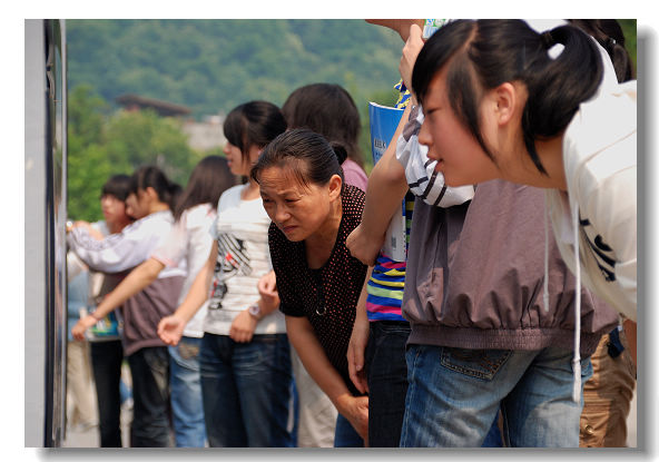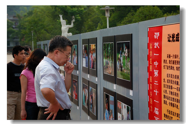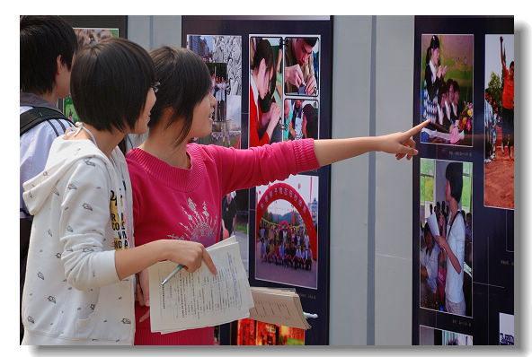 “你看,你看,我们班多帅啊!”“我们的班主任真神气!”“没想到我们的校园照出来这么美!”下课后,同学们把校园里的影展挤了个水泄不通。