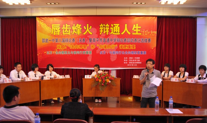 校园新闻 唇齿烽火 辩通人生——南平市普通中学辩论赛邵武赛区选拔赛纪实 作者:admin 来源:本站原创 日期:2010-05-31 人气:3238 上一篇:邵武一中团委举办“爱眼护眼”公益宣传进校园活动 下一篇:“低碳生活 你我他”高二(8)班主题班会纪实 通知公告 更多 【瑞榴 • 公告】2026年邵武一中第... 【瑞榴 • 公告】2026年邵武一中自... 【瑞榴 • 公告】2026年福建省邵武... 【瑞榴 • 公告】2026年福建省邵武... 【瑞榴 • 公告】2025年邵武一中第... 【瑞榴 • 公告】2025年福建省邵武... 最新动态 更多 【瑞榴 • 安全】居安思危强技能 ... 【瑞榴 • 年段活动】星驰万里,共... 【瑞榴 • 年段活动】瑞榴长青 砥... 【瑞榴 • 家校社】校社携手传美德... 【瑞榴 • 教研】深化课堂教学改革... 【瑞榴 • 安全】家校协同筑牢“舌... 【瑞榴 • 德育】春启新程育桃李 ... 【瑞榴 • 德育】百日淬烽尽,六月... 【瑞榴 • 校园开放日】百年传薪启... 【瑞榴 • 德育】凝心聚力启新程 ...