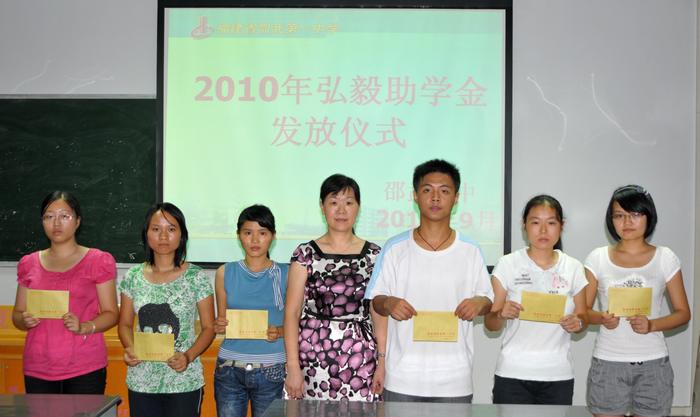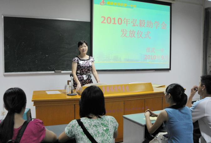 校园新闻 邵武一中举行2010年度弘毅助学金发放仪式 作者:admin 来源:本站原创 日期:2010-09-03 人气:3466 邵武一中举行2010年度弘毅助学金发放仪式 9月3日,邵武一中在校多媒体教室举行2010年度弘毅助学金发放仪式。政教处、团委及受助学生出席了发放仪式。仪式上,一中2010年高考文科第一名考取武汉大学的黄志颖等6名困难家庭大学生喜获总额为18000元的爱心资助。弘毅基金资助对象为邵武一中的在校贫困生以及应届贫困大学生,基金自2007年成立以来资助金额已累计达173600元。 上一篇:畅谈梦想,拥抱未来----邵武一中组织师生以《开学第一课》为契机 下一篇:市妇联发动社会爱心人士关爱资助贫困女学生 通知公告 更多 【瑞榴 • 公告】2026年邵武一中第... 【瑞榴 • 公告】2026年邵武一中自... 【瑞榴 • 公告】2026年福建省邵武... 【瑞榴 • 公告】2026年福建省邵武... 【瑞榴 • 公告】2025年邵武一中第... 【瑞榴 • 公告】2025年福建省邵武... 最新动态 更多 【瑞榴 • 安全】居安思危强技能 ... 【瑞榴 • 年段活动】星驰万里,共... 【瑞榴 • 年段活动】瑞榴长青 砥... 【瑞榴 • 家校社】校社携手传美德... 【瑞榴 • 教研】深化课堂教学改革... 【瑞榴 • 安全】家校协同筑牢“舌... 【瑞榴 • 德育】春启新程育桃李 ... 【瑞榴 • 德育】百日淬烽尽,六月... 【瑞榴 • 校园开放日】百年传薪启... 【瑞榴 • 德育】凝心聚力启新程 ...