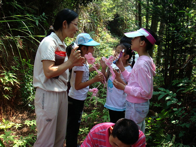 智慧妈妈们筹划了好多有趣的节目:唱校歌、登山、寻宝、猜谜语、脑筋急转弯、亲子活动踩气球、才艺表演。孩子们个个身手不凡,争先恐后!喊叫声、欢呼声、笑声歌声将周围其他的孩子都吸引过来了,羡慕得不得了,哈哈,最后他们也加入了我们的团队。