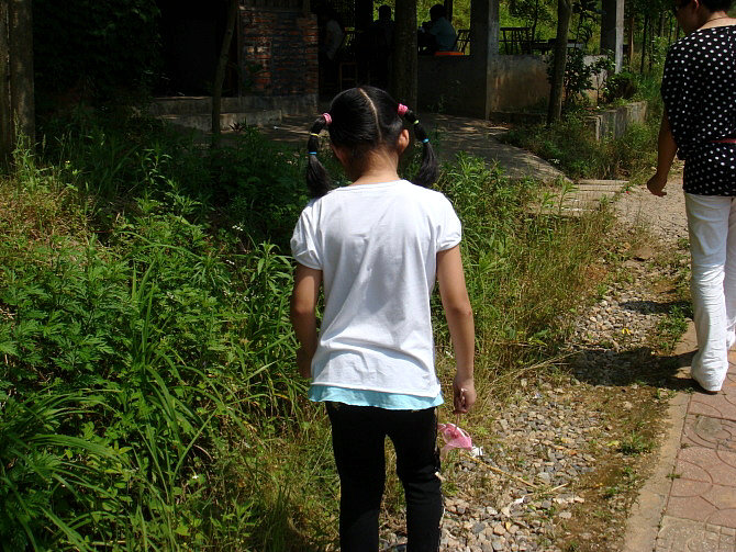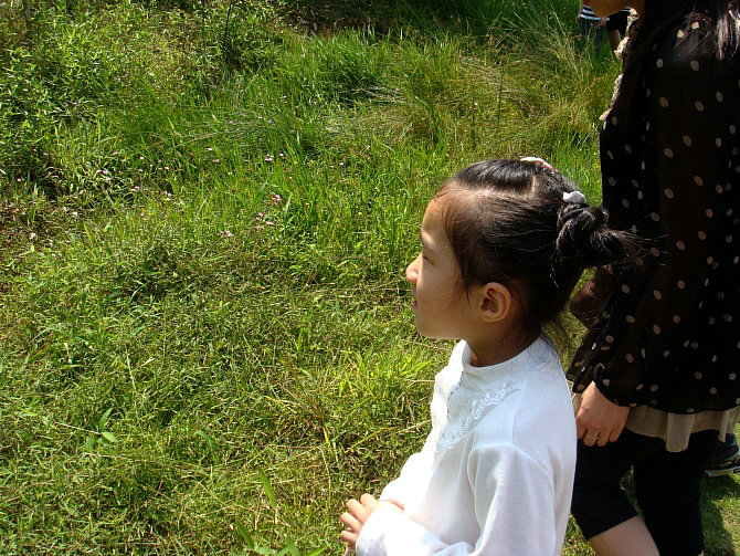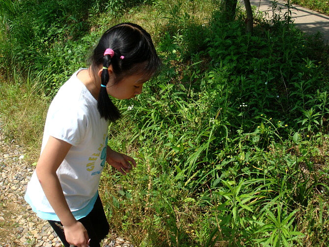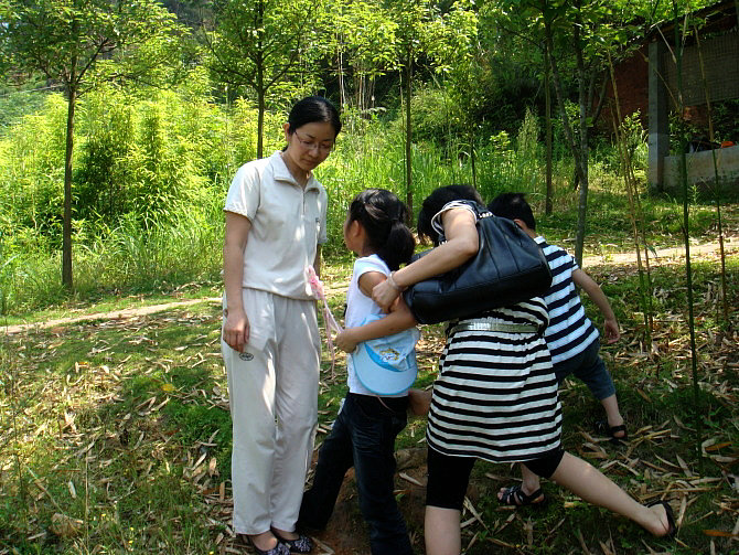 登山比赛喽!哈哈,粲粲暂时领先!