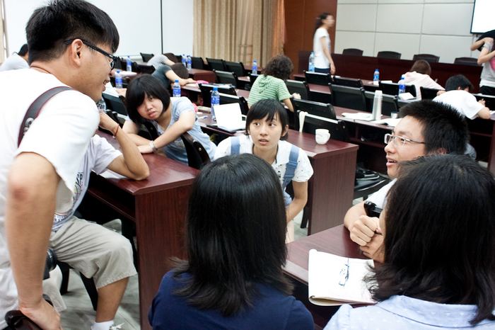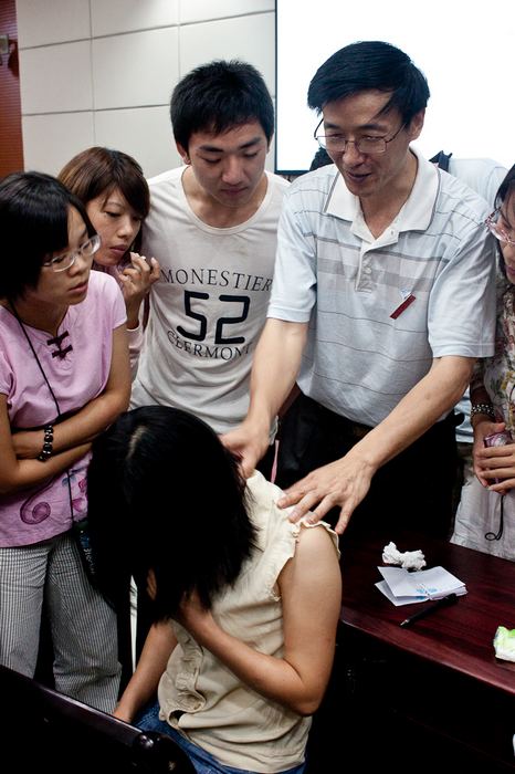 午后,我们十四人同在校的五十大学生以及台湾的五十位同学一起去听郑美凤教授的针灸课。她是一位有着丰富知识以及深沉智慧的老教授。其风趣的语言总是能够抓住我们全部的注意力。在她的课堂上常常爆发出满堂喝彩以及欢乐的笑声。