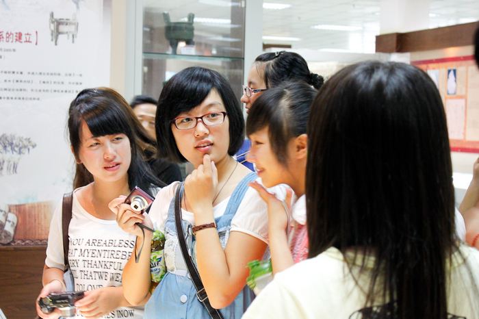 这或许就是两岸人民的差别所在——因为社会制度,人文地理环境的差异,其意识形态也不尽相同。然而在与他们交流时我们却发现,台湾学生的口音其实并不像电视上的政客、歌手和影星一样带有浓重的闽南腔,并且他们中甚至也有人对马克思主义之类的思想抱有极大的兴趣。这让我又不得不感叹本此活动主办方的高明之处:在让我们这些高中生体验大学生活的同时,还给予我们一次和海峡彼岸学子交流的机会,使两岸人民更加深刻地体会到“两岸一家亲”的实质。