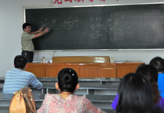 近日,一中数学教研组组织全校数学教师专题研究2012高考试题,会上,郭胜光副校长作了“高考(含数学竞赛)解析几何压轴题的横向、纵向拓展的命题研究”的专题讲座。