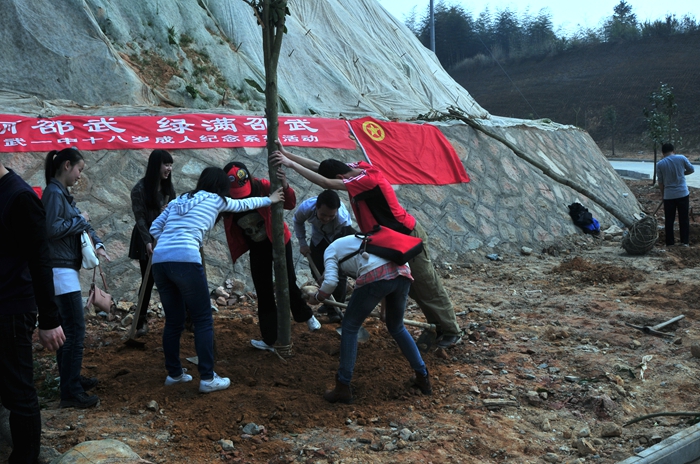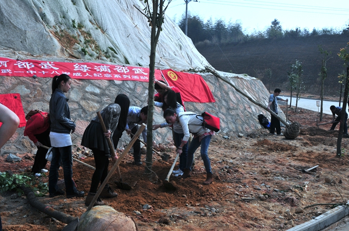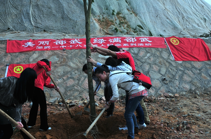 春暖花开万物苏,阳春三月植树时。3月12日上午, 邵武一中团委组织多名教师及学生参加了团市委、市绿化办联合组织的“美丽邵武 绿满邵武”义务植树活动。活动现场,彩旗飘扬,到处是一片热气腾腾的劳动景象,大家一道挥锹扬铲,栽下一棵棵树种,植入绿的愿望。