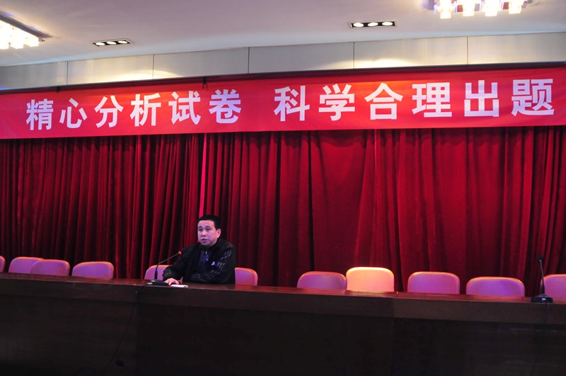 10日晚,一中全体教师齐聚教工会议室进行“精心分析试卷,科学规范出题” 理论学习。学习由校教研室主任吴玉平主持,化学高级教师张宝杰首先做了题为《如何科学规范地进行“发展性”学科考试命题》的讲座,他从学校考试的分类、着眼点,学校发展性考试的功能,试卷的双向细目表入手,分析考试的价值与属性等几方面指导教师科学规范进行命题。语文高级教师黄邵辉也做了题为《试题编制技术与试卷质量分析》的讲座,他从考试题型、具体案例入手,详细分析了试卷编制前的准备工作、试卷编制中的技术要点及试卷测试后的质量分析与评价。在最后的总结中,张光华书记向全校教师提出要求“年轻教师会选题,骨干教师会改题,名师会编题”。