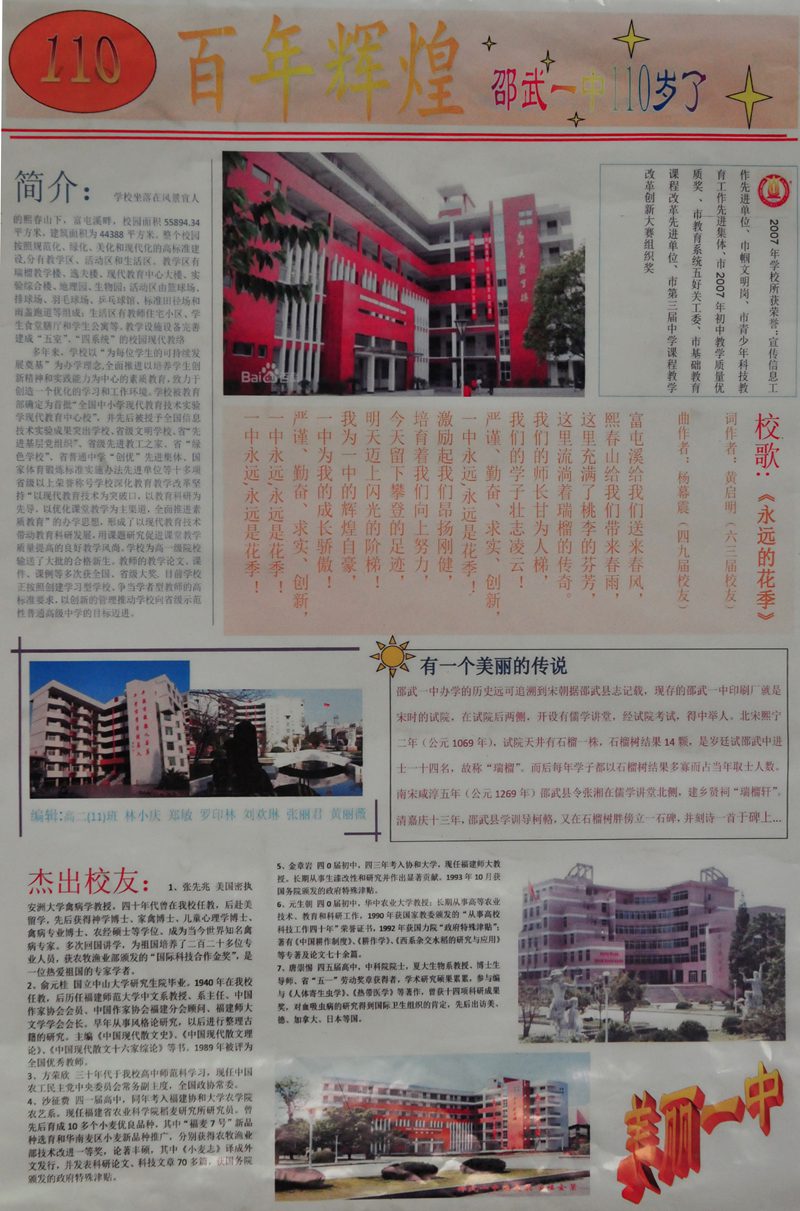 校庆110周年主题小报评选结果