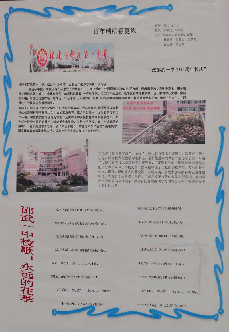 | 高一(5) | 危道平 黄舒琪 危彦晨 危闽坚 饶雯 江芳瑞 | |
