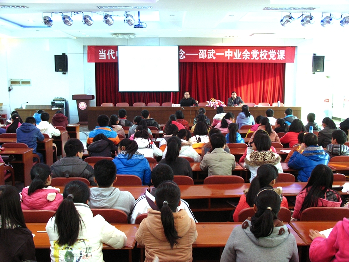 近日,邵武一中第八期业余党校在校教工会议室开班教授党课,200余名学员认真聆听了本次党课。主讲人校党委副书记,纪委书记周国华讲授了题为《当代中学生的理想信念》的党课。课上,他用一个个生动员的例子对中学生的理想信念作了深入浅出的阐述。生动的讲座让学员们都感到受益匪浅,他们纷纷表示要争做同学的楷模,争取早日入党。邵武一中“中学生业余党校”自2008年复办以来已成功举办了8期,已有2000多名学员顺利结业。