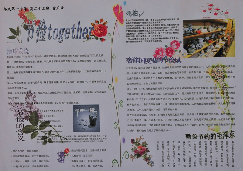 | 《节俭together》 | 黄亚云 | 高二(13) | |