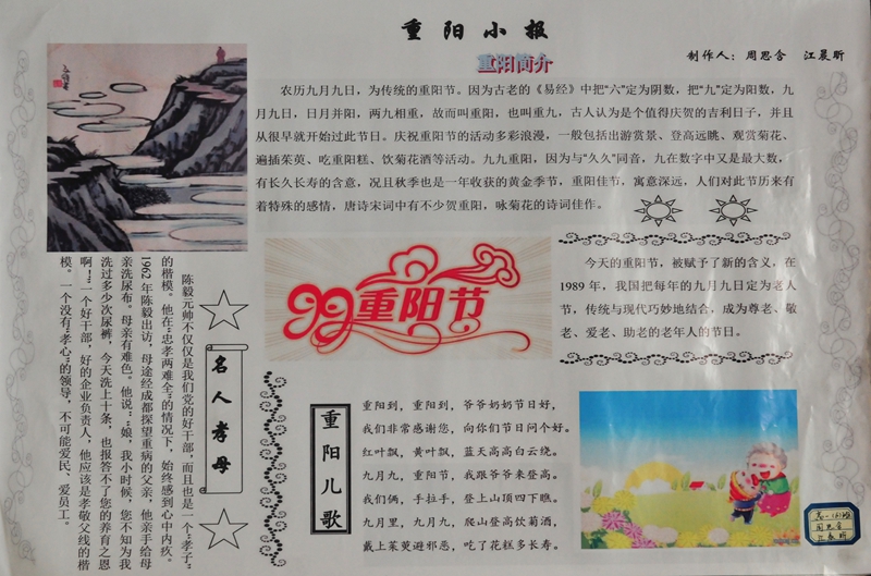 | 《重阳小报》 | 周思含 江晨昕 | 高一(6) | |