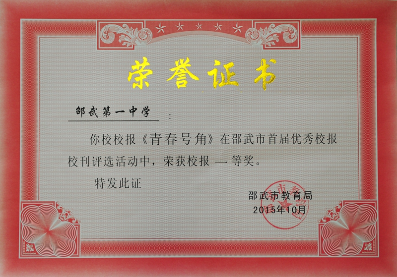 校园新闻 邵武一中校报校刊荣获一等奖 作者:admin 来源:本站原创 日期:2015-11-06 人气:2816 上一篇:“口说无凭,眼见为实”——中科大梁高林教授莅临一中解读影像世 下一篇:邵武一中参加市学生运动会 通知公告 更多 【瑞榴 • 公告】2026年邵武一中第... 【瑞榴 • 公告】2026年邵武一中自... 【瑞榴 • 公告】2026年福建省邵武... 【瑞榴 • 公告】2026年福建省邵武... 【瑞榴 • 公告】2025年邵武一中第... 【瑞榴 • 公告】2025年福建省邵武... 最新动态 更多 【瑞榴 • 安全】防毒护苗,青春无... 【瑞榴 • 教研】研讨聚智谋备考 ... 【瑞榴 • 工会】规范器材使用 护... 【瑞榴 • 社团活动】品《人生》悟... 【瑞榴 • 教研 】迎视导精研备考... 【瑞榴 • 党委工会】巾帼心向党 ... 【瑞榴 • 安全】瑞榴启新程 安全... 【瑞榴 • 安全】居安思危强技能 ... 【瑞榴 • 年段活动】星驰万里,共... 【瑞榴 • 年段活动】瑞榴长青 砥...