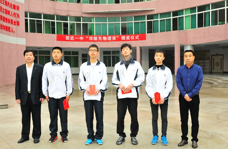 本次荣获2015年度邵武一中“邓稼先”物理奖的四位同学,对物理学习有浓厚兴趣,在上学期期末考试中,物理成绩特别突出,经校委会确定给予奖励。