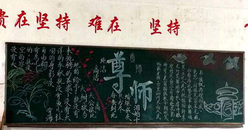 2016年9月,在第32个教师节来临之际,为传承尊师美德,丰富师生教师节活动,并在日常行为规范及环境布置中穿插安全教育知识,防微杜渐,我校开展了以“尊师重教、安全教育”为主题的黑板报评比活动。
