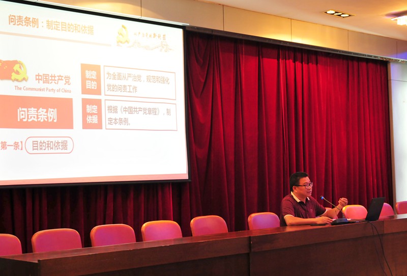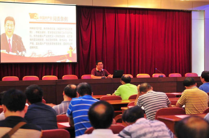 17日晚,邵武一中党委在校教工会议室举办党课,学习“习近平总书记系列重要讲话精神”及《中国共产党问责条例》,一中全体党员参加了党课学习。党课由邵武一中副校长杨方主持,市委党校高级讲师王仁锦为大家做了“习近平总书记系列重要讲话精神”的专题讲座,一中党委副书记、纪委书记周国华在会上做了“《中国共产党问责条例》学习解读”专题讲座,两个讲座通过详细的资料,丰富的事例让全体党员们更加明确了一名合格党员的标准,以更饱满的热情投身到教育教学的实践中去。