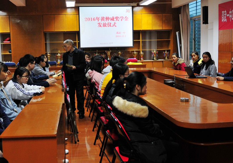 校园新闻 邵武一中举行2016年黄仲咸奖学金发放仪式 作者:admin 来源:本站原创 日期:2016-12-02 人气:3181 12月1日,南平市老区建设促进会工作人员到邵武一中发放2016年度黄仲咸奖学金。黄仲咸奖学金主要面向我市老区山区受到国家助学金资助的在校普通高中阶段品学兼优的学生。对革命“五老”、烈士、军属(含失散红军)后代优先安排。2016年邵武一中获得黄仲咸奖学金共40人,每生奖金1000元。老促会李科长、危主任在发放仪式上鼓励同学们勤奋学习,立志成才。 上一篇:我校开展2016年国家宪法日暨全国法制宣传日宣传教育活动 下一篇:邵武一中进行全面校园安全排查 通知公告 更多 【瑞榴 • 公告】2026年邵武一中第... 【瑞榴 • 公告】2026年邵武一中自... 【瑞榴 • 公告】2026年福建省邵武... 【瑞榴 • 公告】2026年福建省邵武... 【瑞榴 • 公告】2025年邵武一中第... 【瑞榴 • 公告】2025年福建省邵武... 最新动态 更多 【瑞榴 • 安全】防毒护苗,青春无... 【瑞榴 • 教研】研讨聚智谋备考 ... 【瑞榴 • 工会】规范器材使用 护... 【瑞榴 • 社团活动】品《人生》悟... 【瑞榴 • 教研 】迎视导精研备考... 【瑞榴 • 党委工会】巾帼心向党 ... 【瑞榴 • 安全】瑞榴启新程 安全... 【瑞榴 • 安全】居安思危强技能 ... 【瑞榴 • 年段活动】星驰万里,共... 【瑞榴 • 年段活动】瑞榴长青 砥...