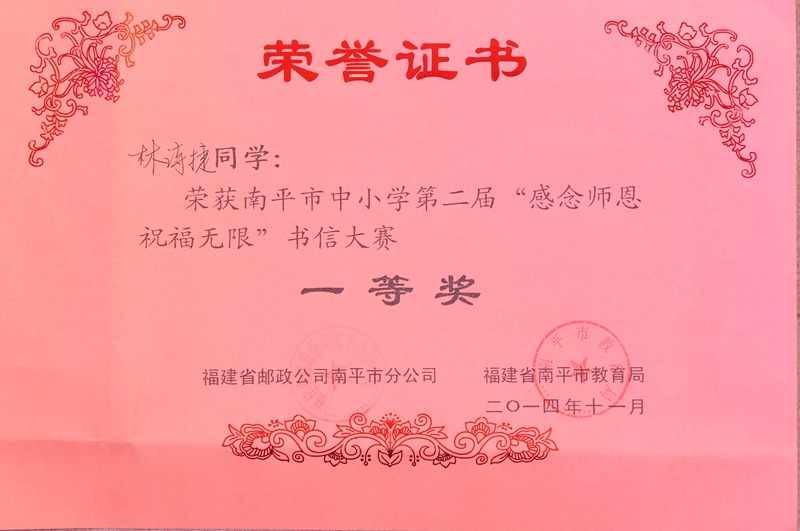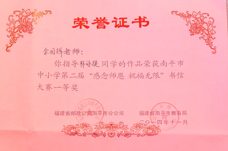 校园新闻 喜报 作者:admin 来源:本站原创 日期:2014-12-08 人气:2974 热烈祝贺我校高一(8)班林诗捷同学南平市中小学第二届“感念师恩,祝福无限”书信大赛一等奖! 上一篇:邵武一中顺利召开第十届第二次教职工代表大会 下一篇:邵武一中开展“宪法在我心中”法制教育报告会 通知公告 更多 【瑞榴 • 公告】2026年邵武一中第... 【瑞榴 • 公告】2026年邵武一中自... 【瑞榴 • 公告】2026年福建省邵武... 【瑞榴 • 公告】2026年福建省邵武... 【瑞榴 • 公告】2025年邵武一中第... 【瑞榴 • 公告】2025年福建省邵武... 最新动态 更多 【瑞榴 • 安全】防毒护苗,青春无... 【瑞榴 • 教研】研讨聚智谋备考 ... 【瑞榴 • 工会】规范器材使用 护... 【瑞榴 • 社团活动】品《人生》悟... 【瑞榴 • 教研 】迎视导精研备考... 【瑞榴 • 党委工会】巾帼心向党 ... 【瑞榴 • 安全】瑞榴启新程 安全... 【瑞榴 • 安全】居安思危强技能 ... 【瑞榴 • 年段活动】星驰万里,共... 【瑞榴 • 年段活动】瑞榴长青 砥...