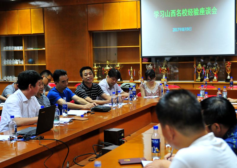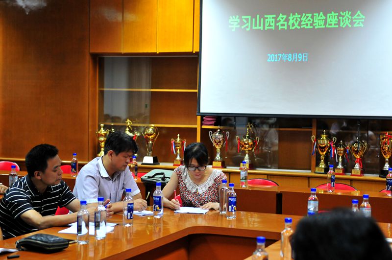 会上,一中郭胜光校长从政府重视;管理到位;教学有序这三个方面谈了自己对山西之行感触,他提出今后的全校工作将一切向教学工作看齐,全力以赴备战2018年高考。教育局局长陈生良提出四点思考一是争取政府对学校尤其是一中适当的投入;二是鼓励学校对学生严格管理;三是鼓励学校对教师严格管理;四是加强全市校长队伍的建设。