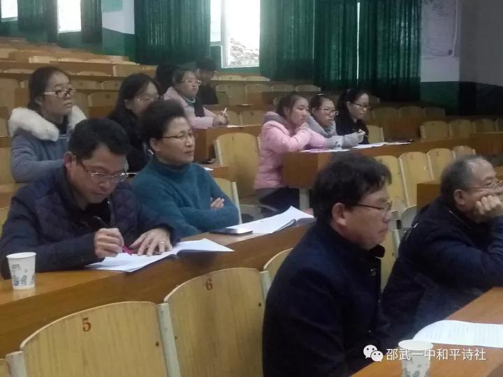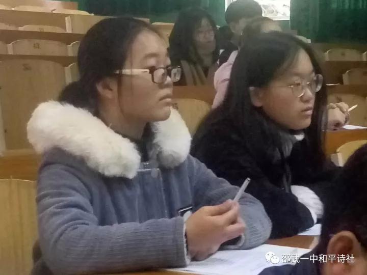 2017年11月26日上午,邵武一中和平诗社举办名为《以“三个巧妙”通变写法作诗》的古典诗词写作讲座,主讲为邵武市诗词学会会长郑德福先生。诗社一共有15位同学参加了此次活动。