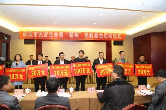 邵武市领导对企业家发出邵武市 “民营企业家‘精英’奖教基金”募捐倡议书,在郭校长和我校领导班子的不断努力与争取之下,我校成功与商会签订协议。 该“奖教金”用于奖励师德高尚、在教育科研、学科教学、竞赛辅导等方面取得突出成绩的教师,并优先奖励对高考有突出贡献的一线教师,及考入“985”、“211”或清华北大的学生。这不仅是对一线教师辛勤诚恳付出汗水的认可,同时也激发了师生的积极性,有利于邵武市形成社会助教、教师乐教、学生勤学的新风尚。