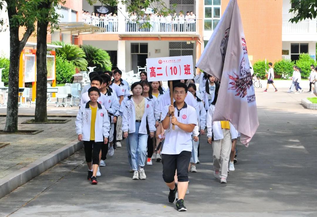 上午,8:30分一到,高二年段学生便陆续聚集到活动地点集合,以班级为序轮流到逸夫楼下喊出自己对高三的祝福。此起彼伏的“喊话”透过传递的话筒唱响每一个角落,飞扬在邵武一中上空。“985,211,双一流大学任你挑/终点红旗迎风飘/是流火七月少年豪/曾经,也会迷惘/如今,我更坚强/纵横四海后生无畏/出手就再创辉煌”“天王盖地虎,宝塔镇河妖,冲刺985,决战211。慢做会,求全对。稳做中档题,一分不浪费。” “此战祝君平步青云,蟾宫折桂 2020高考加油” “剑指江湖,今朝谁能问鼎。笔落惊风,明日舍我其谁。高考加油!”,一个个班级,一棒棒接力,一句句的祝福,一声声的助威,一次次的掌声,汇聚成必胜的信心和所向披靡的勇气,点燃了高三考生心里的血性与干劲!