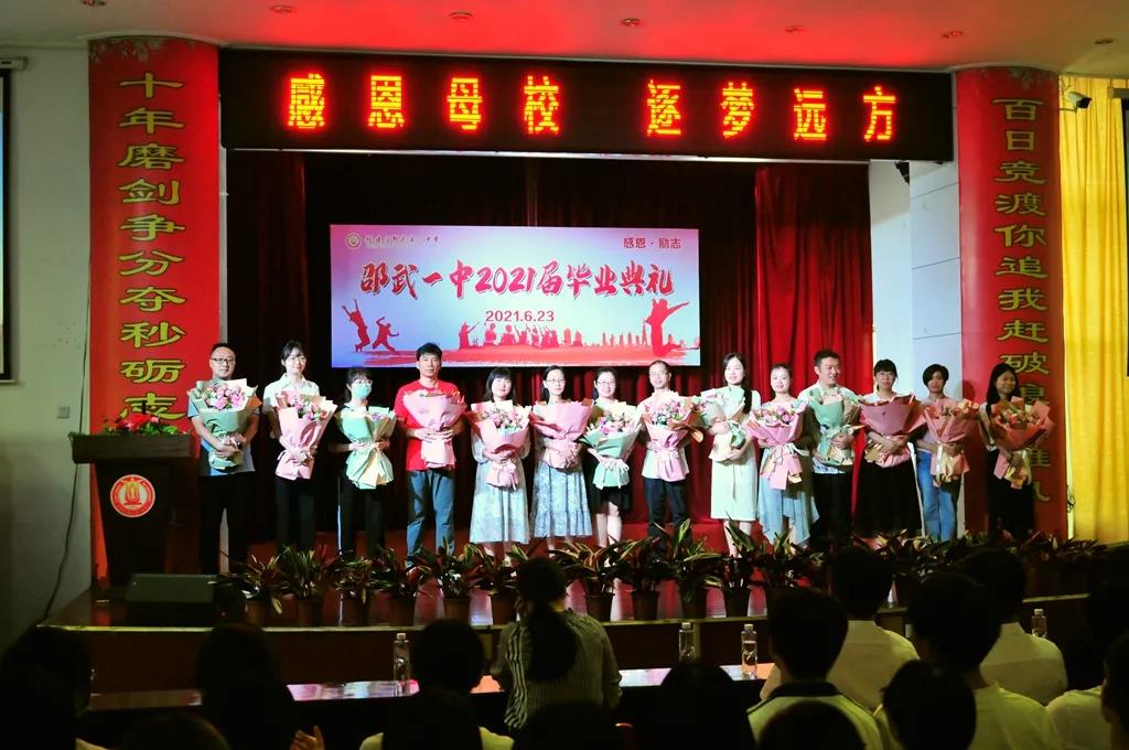 2021年6月23日,邵武一中领导、2021届高三教师、学子及家长代表齐聚一堂,隆重召开2021届学生毕业典礼,以典礼见证学子的成长与收获,并开启人生新的旅程与辉煌。出席本次活动的领导有:邵武一中吴萌校长、许俊斌副校长、吴昊副校长、陈丹副校长、吴凯民主席。
