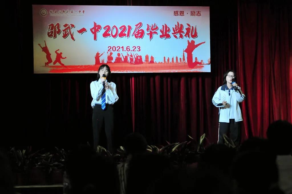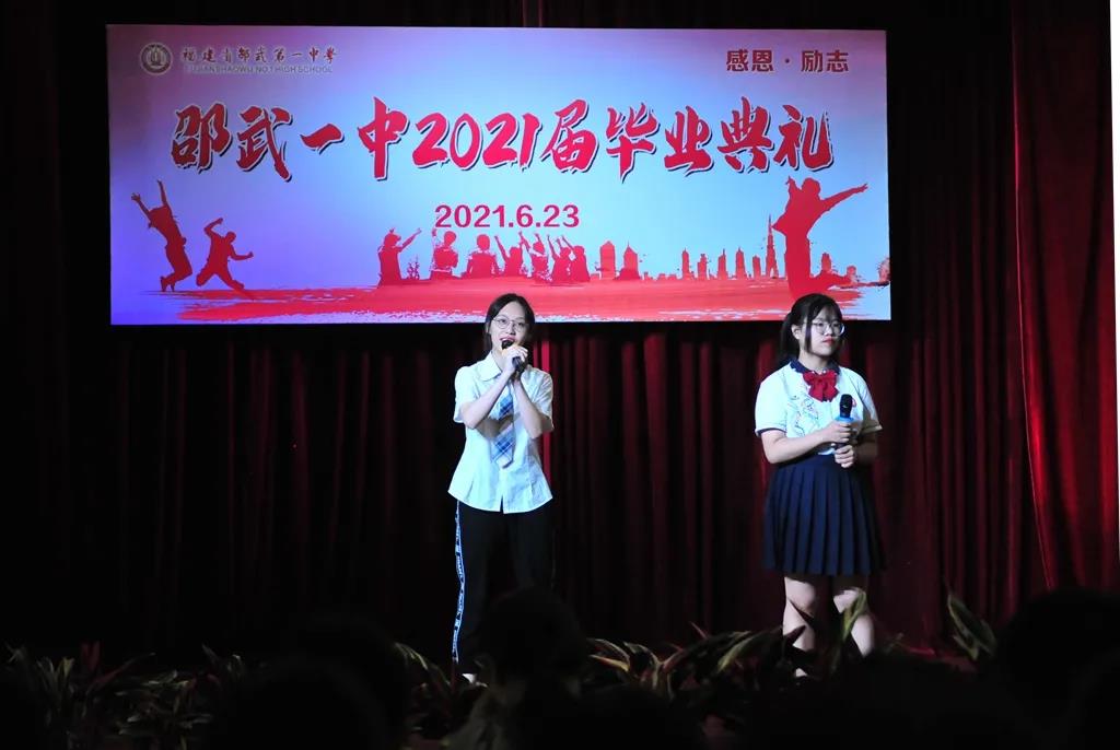 在2021届毕业生中,涌现出一大批优秀学子,有的全面发展,在各类大赛和校园文化活动中斩获颇丰;有的学习成绩优异,在各种知识竞赛中破浪前行。他们展示了2021届优秀毕业生的风采,发挥了先进典范的榜样力量。学生代表方雨菲的发言,展现了这一辈时代新人的优秀品质,体现了邵武一中“求真知,做真人”的校训,有热情、有希望,有理想,有踏实,有勤奋,有执着,有不忘本,也有开拓创新。