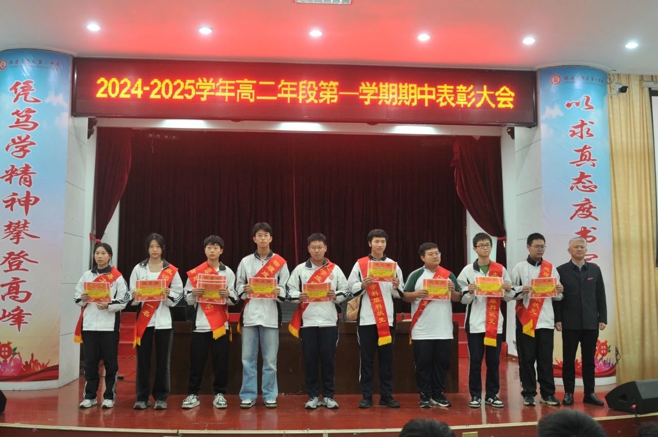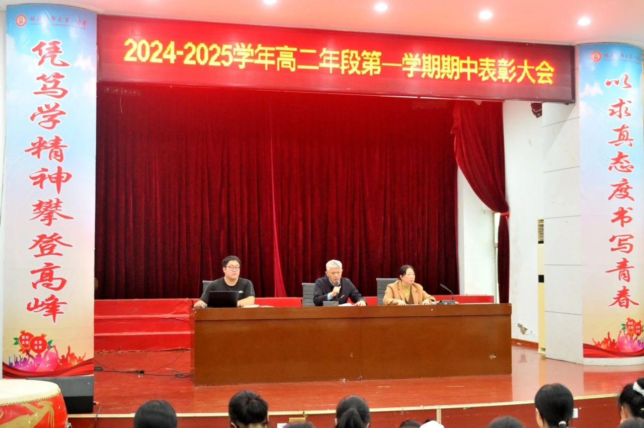 11月9日,高二年段第一学期期中表彰大会在学生报告厅举行。大会旨在表彰优秀学子,回顾总结学习历程,激励全体师生持续奋进。许俊斌校长、余国辉副校长、温暖宁副校长及高二年段全体师生共同见证了这一时刻。