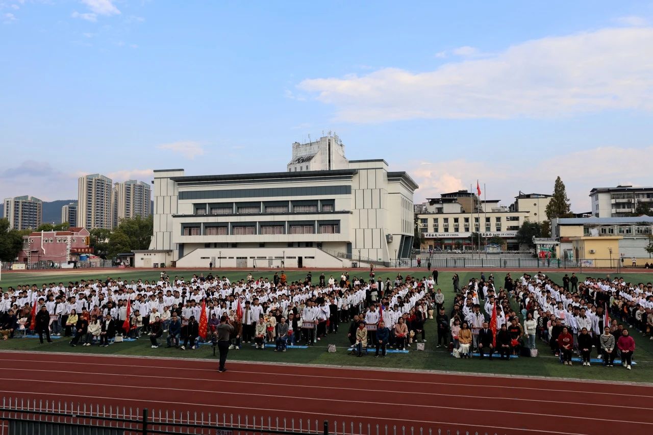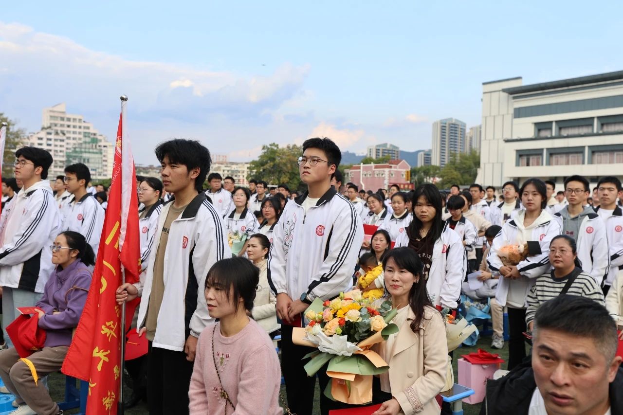校领导、老师、家长和同学们齐聚体育场,共同见证这一重要时刻。在庄严肃穆的氛围中,全体起立,面向国旗,奏唱国歌,表达对祖国的热爱和敬意。