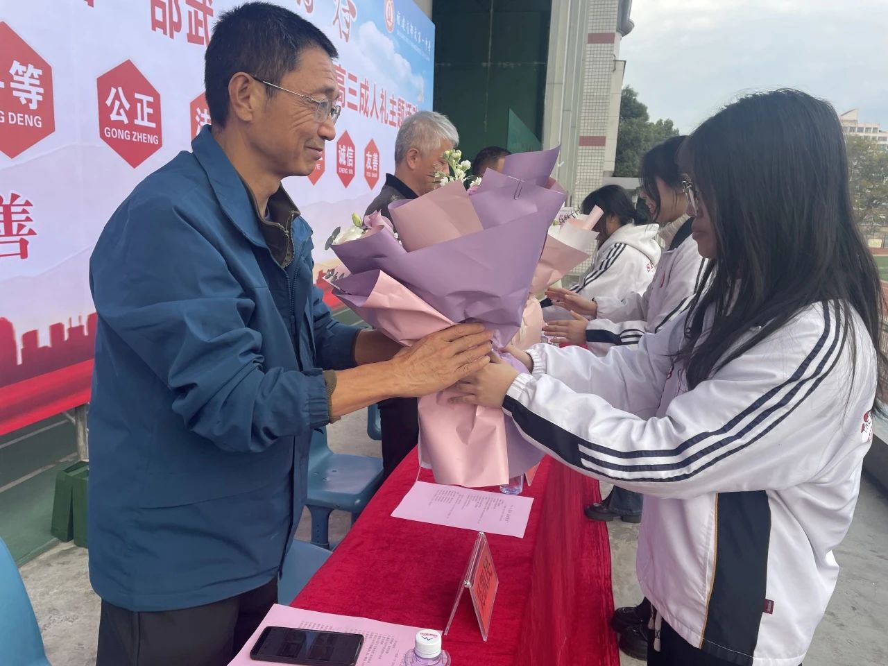 行拜谢礼,是孩子们对父母十八年生养哺育的感恩。在感恩父母的同时,同学们也不忘向亲爱的老师们敬赠鲜花,鞠躬致谢。