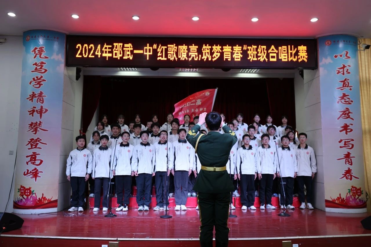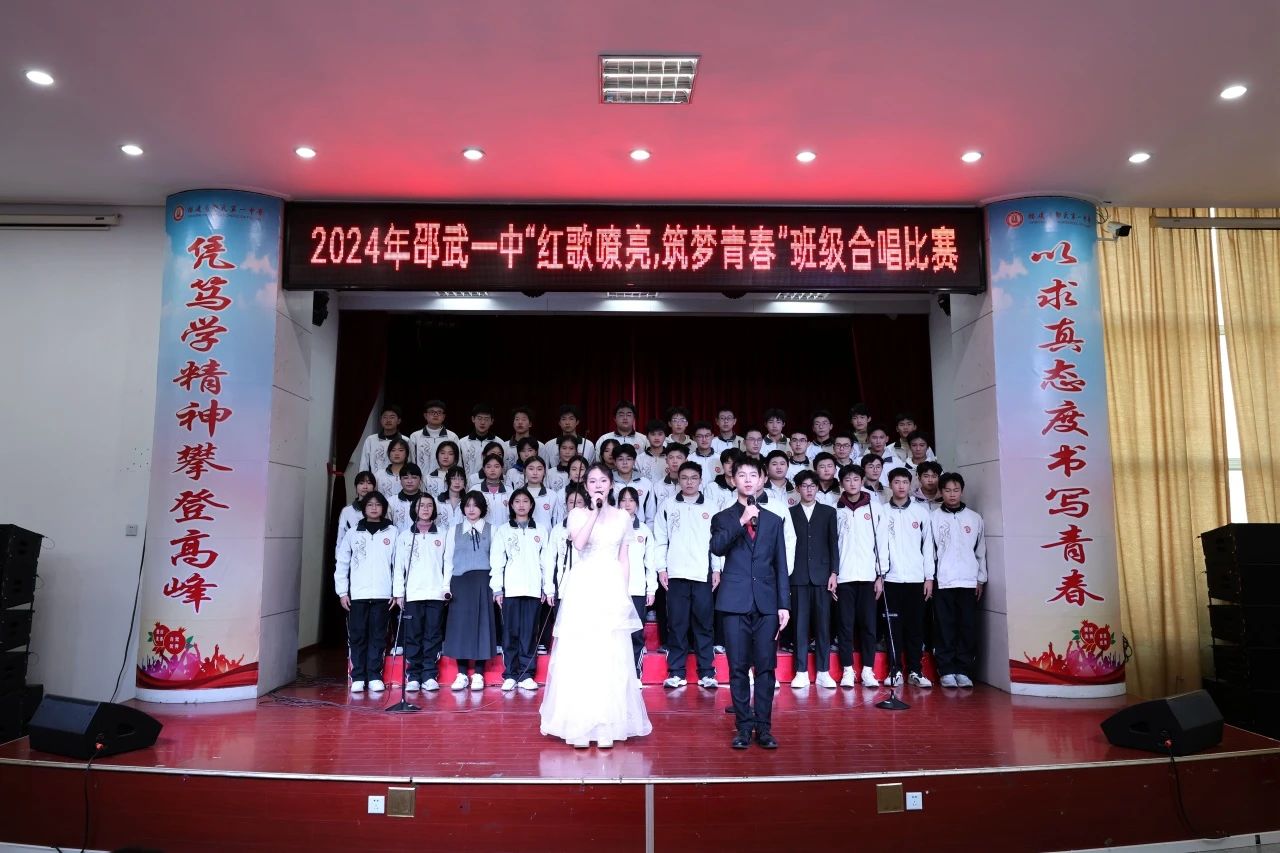 瑞榴飘香,青春如火,红歌嘹亮之声在校园中回荡,坚定的信念得以传承。14 个班级竞相展现独特风采,有的师生同唱,情谊深厚,令人动容;有的分声部合唱,和谐之音,悦耳动听;还有的诵唱结合,创意十足。架子鼓的激情伴奏与钢琴的悠扬旋律相得益彰,舞台上红旗飘扬,星光点点。