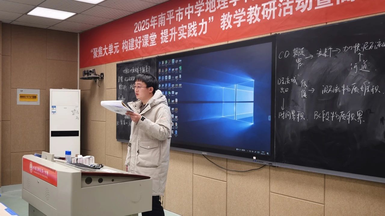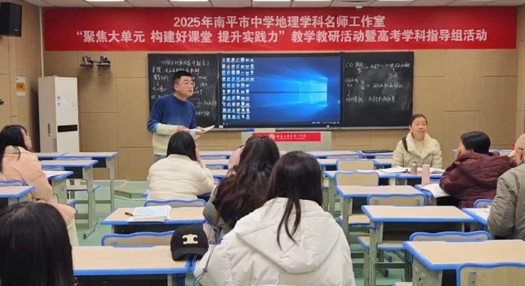 为提高地理教育教学质量,充分发挥南平市高中地理学科指导组及中学地理学科名师工作室的引领作用,南平市教育科学研究院于2025年1月3日成功举办了邵武、武夷山、建阳三市名师工作室教学教研暨学科指导组交流活动,此次活动由我校承办。本次活动以“聚焦大单元,构建好课堂,提升实践力”为主题,通过观课议课、研学实践等形式,为教师们带来一场教学盛宴。
