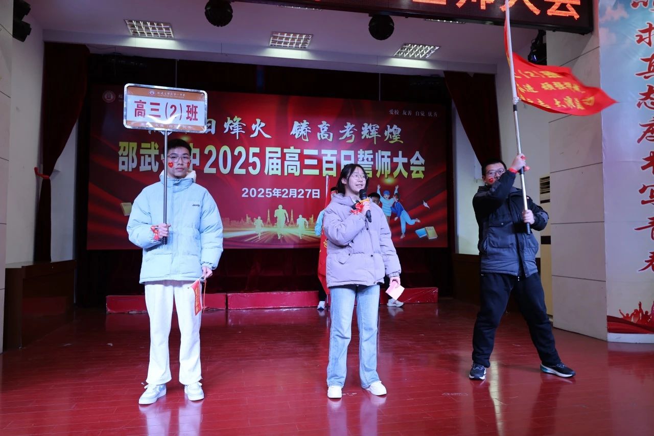 赖舒曼同学铿锵有力的发言鼓励高三学子:所有在题海中挣扎的夜晚,都在为最后的爆发蓄能;所有被红笔刺穿的试卷,终将拼成胜利的版图!当百日后的朝阳升起,让成绩单成为最耀眼的捷报!