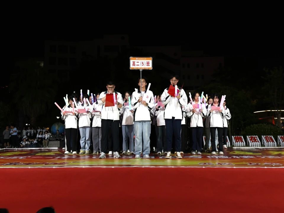 “邵武一中,高考必胜!”“高三加油,金榜题名!”高二14个班级依次呐喊,专属祝福响彻夜空——“笔下生花战考场,蟾宫折桂占鳌头!”“乘风破浪逐梦想,六月荣光载誉归!”一句句赤诚期盼,化作高三学子披荆斩棘的铠甲,让奋斗之路不再孤单!